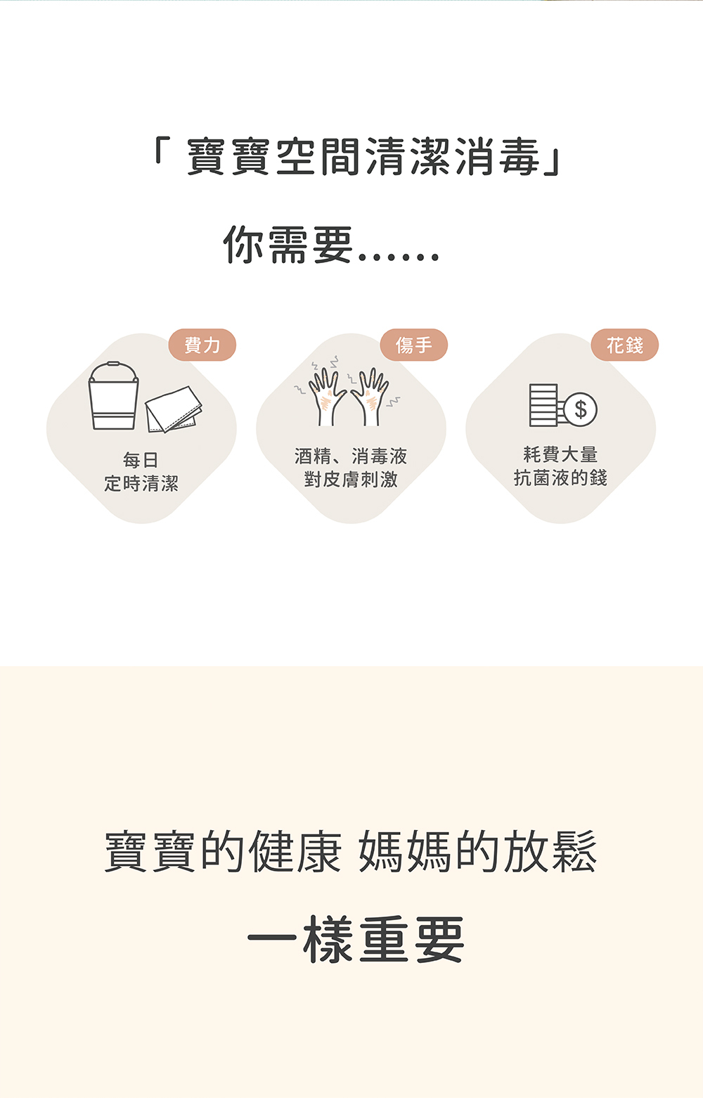 平時可用吸塵器、除塵滾筒清除灰塵。可搭配酒精、消毒液噴灑後用濕布擦拭進行清潔消毒。