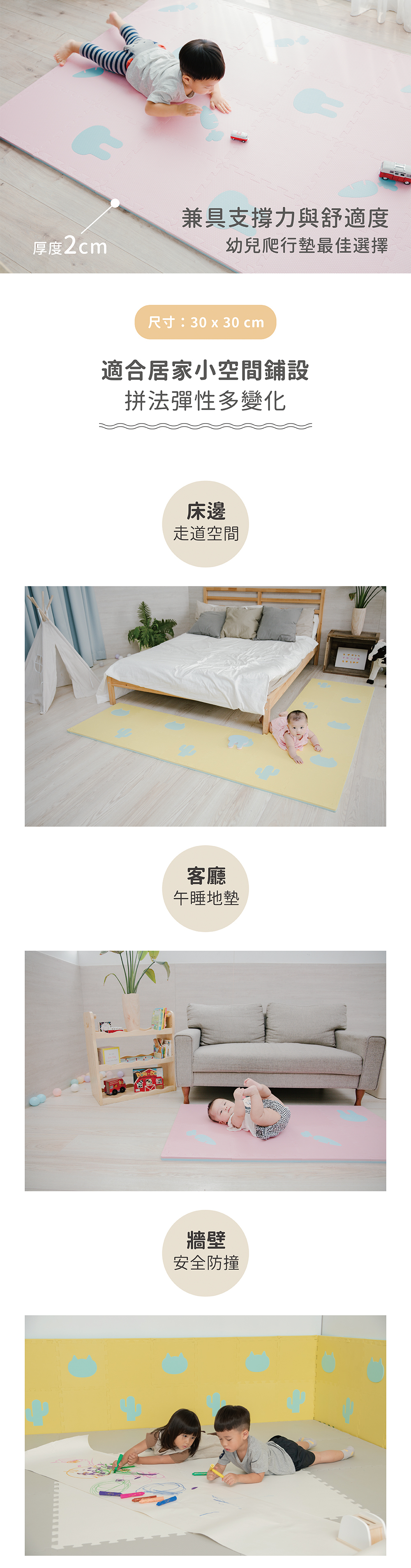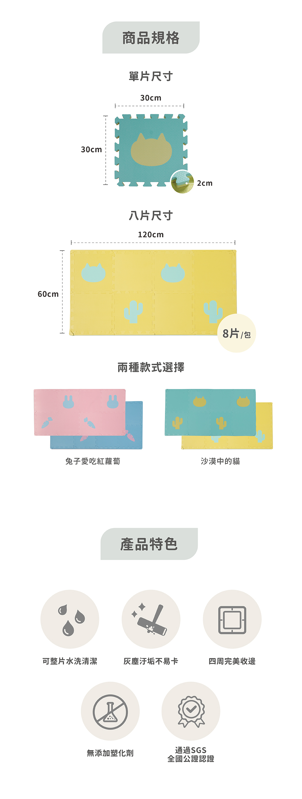 單片尺寸:30 x 30 x 厚度 2 cm (發泡產品具+-5%之差異)