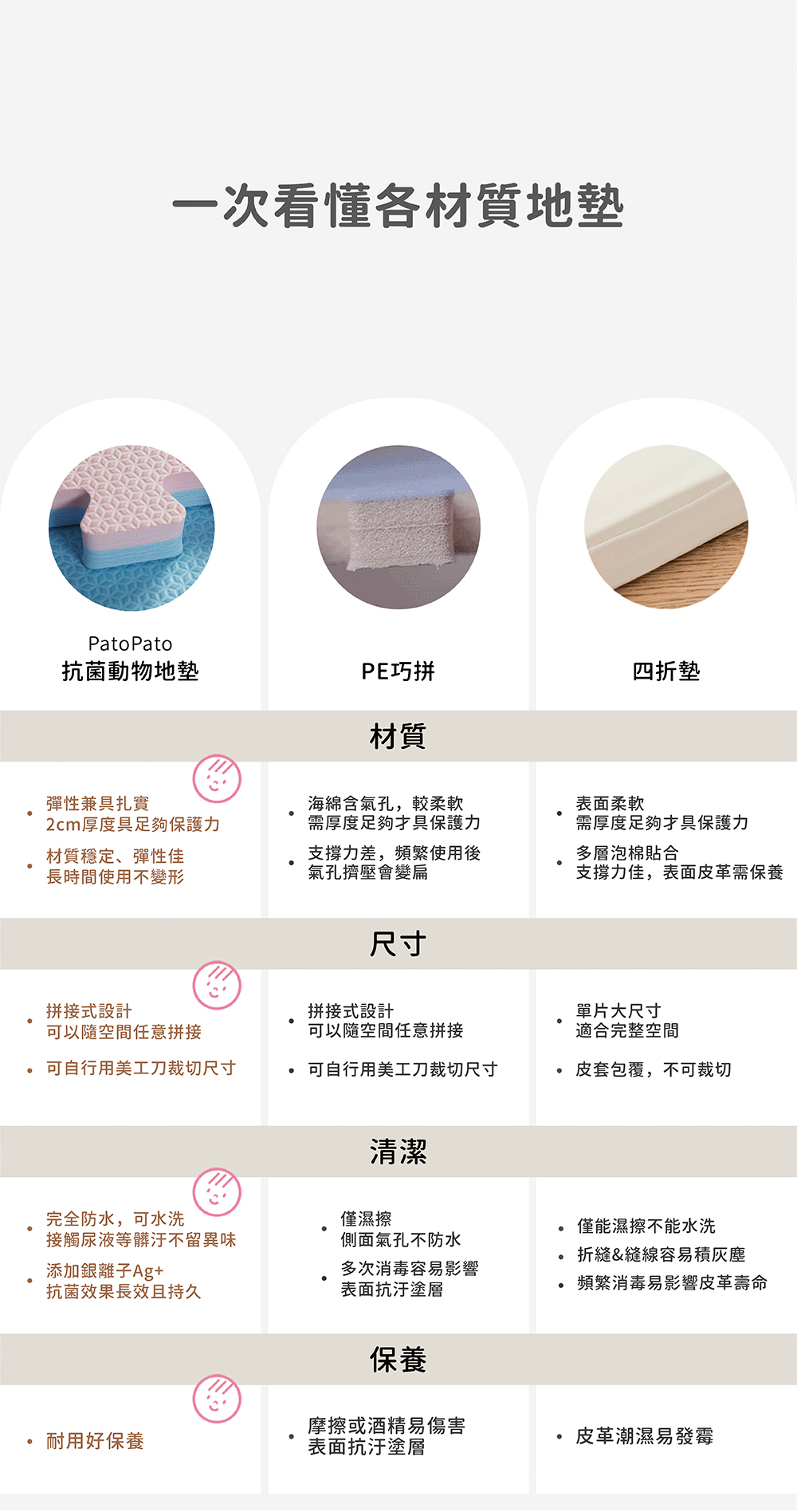 2. 淺紋路不卡髒污、改良式拼接齒,灰塵不滲透,超好清潔。