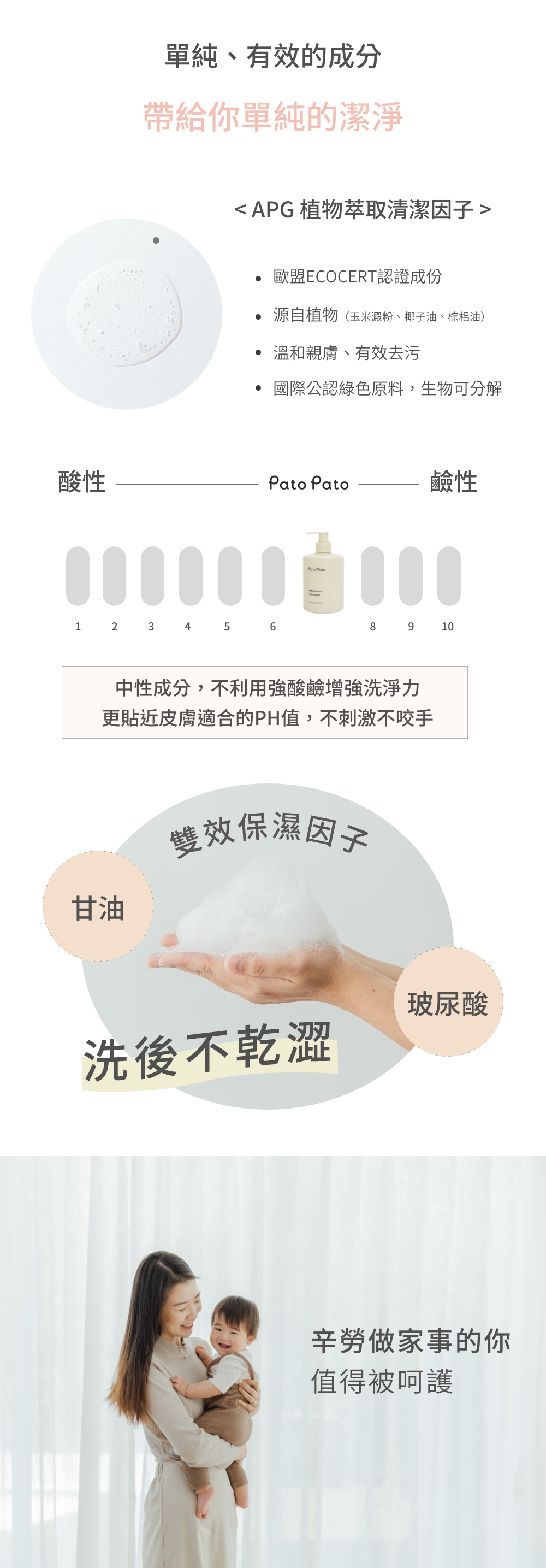 3 ◦ 添加玻尿酸,不刺激、不咬手,清潔寶寶物品也能很舒適優雅。