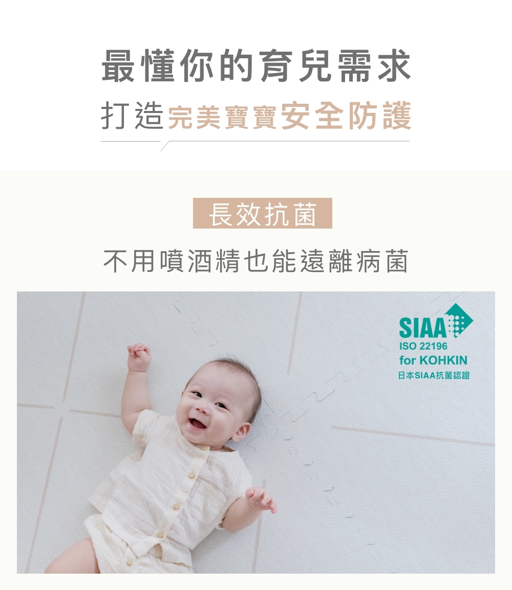 日本SIAA認證抗菌無毒地墊,塵蟎灰塵不堆積,避免寶寶過敏。