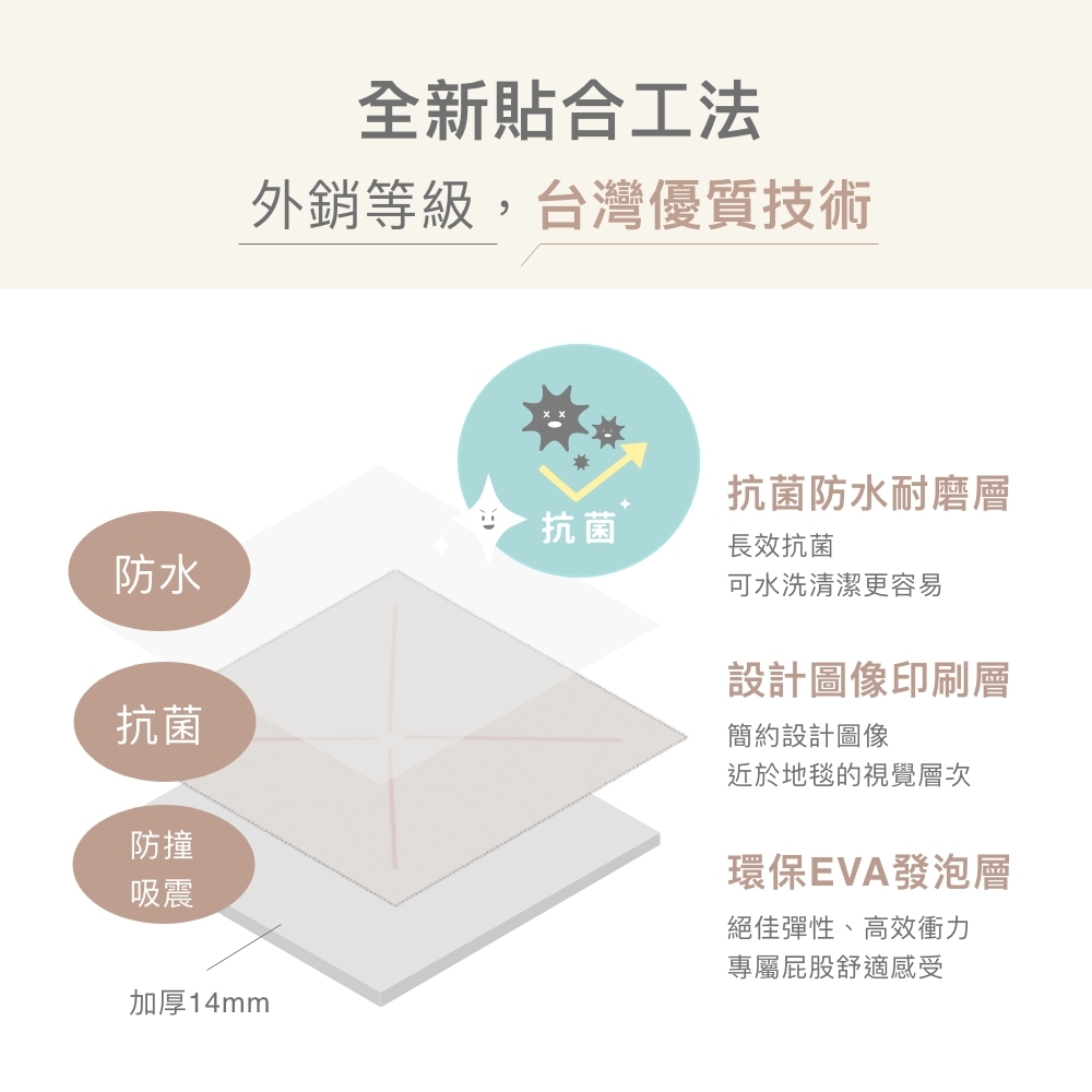3.加厚14mm、富彈性,舒適及安全兼具,增加居家空間視覺層次