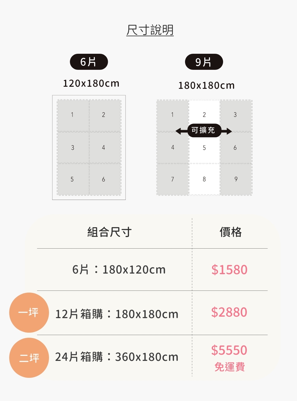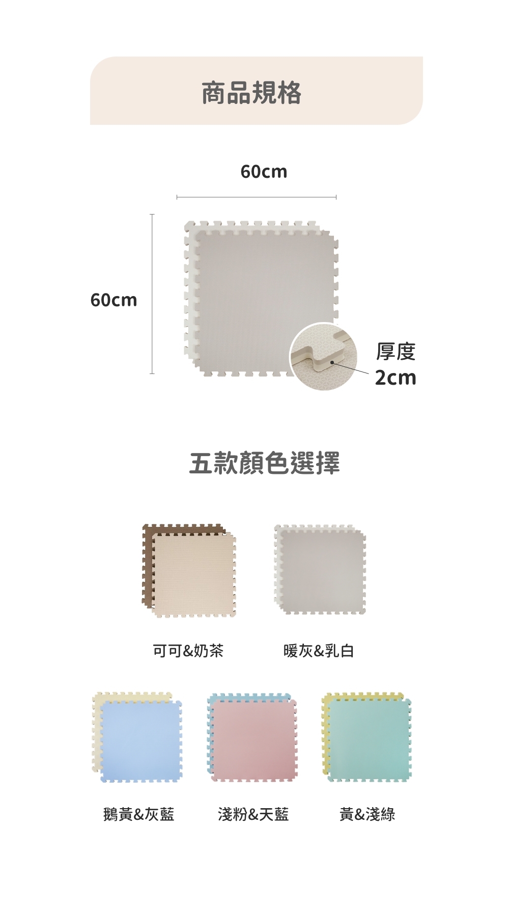 (地墊為發泡製程具+-5%之厚度差異,邊條屬於贈品若有黑點、染色及斷開不屬於產品瑕疵唷)
