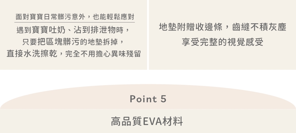 我們的地墊改良的拼接齒相當緊密,灰塵不太會透過接縫滲透,