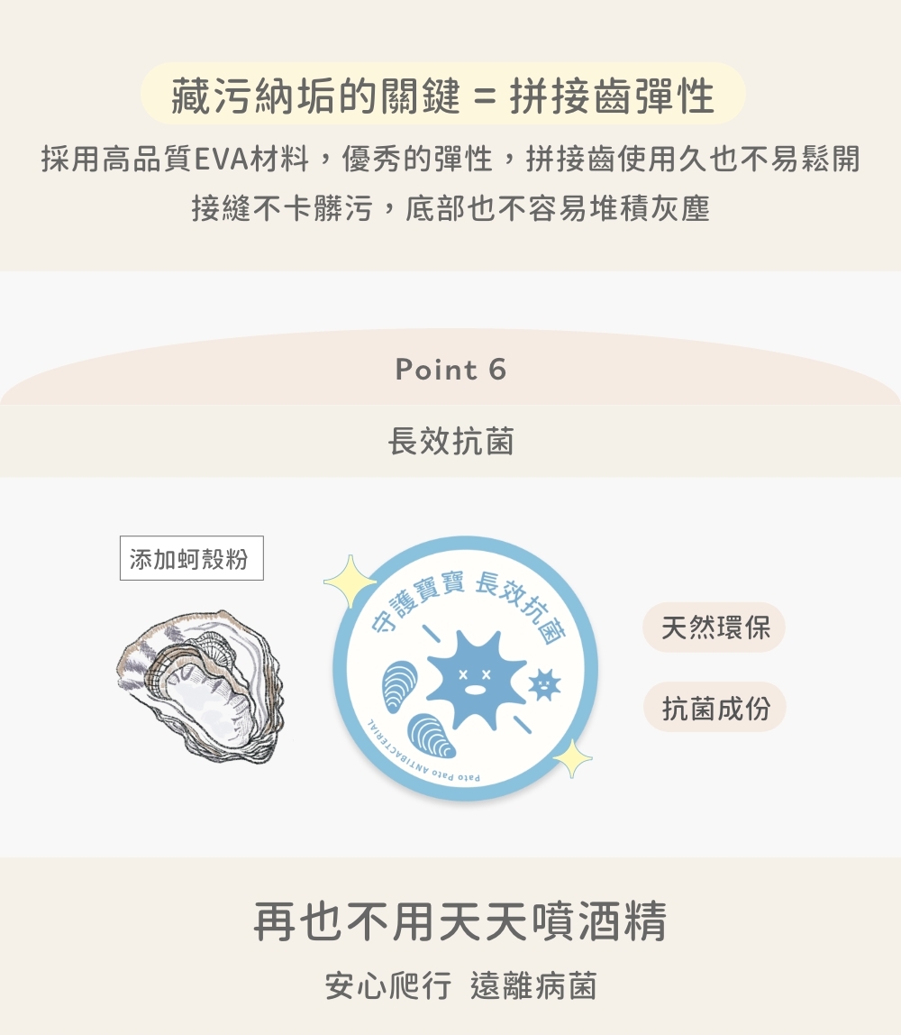 ❝三大改良,超好清潔:完全防水、淺紋路不卡髒污、改良式拼接齒,灰塵不滲透。