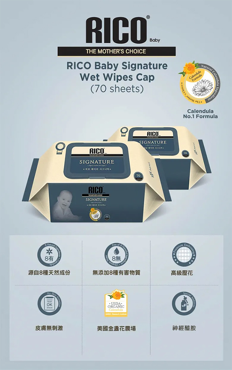 【Rico Baby】⾦盞花有機天然特厚款濕紙⼱|Signature 70抽/包|5包入加贈動物手機