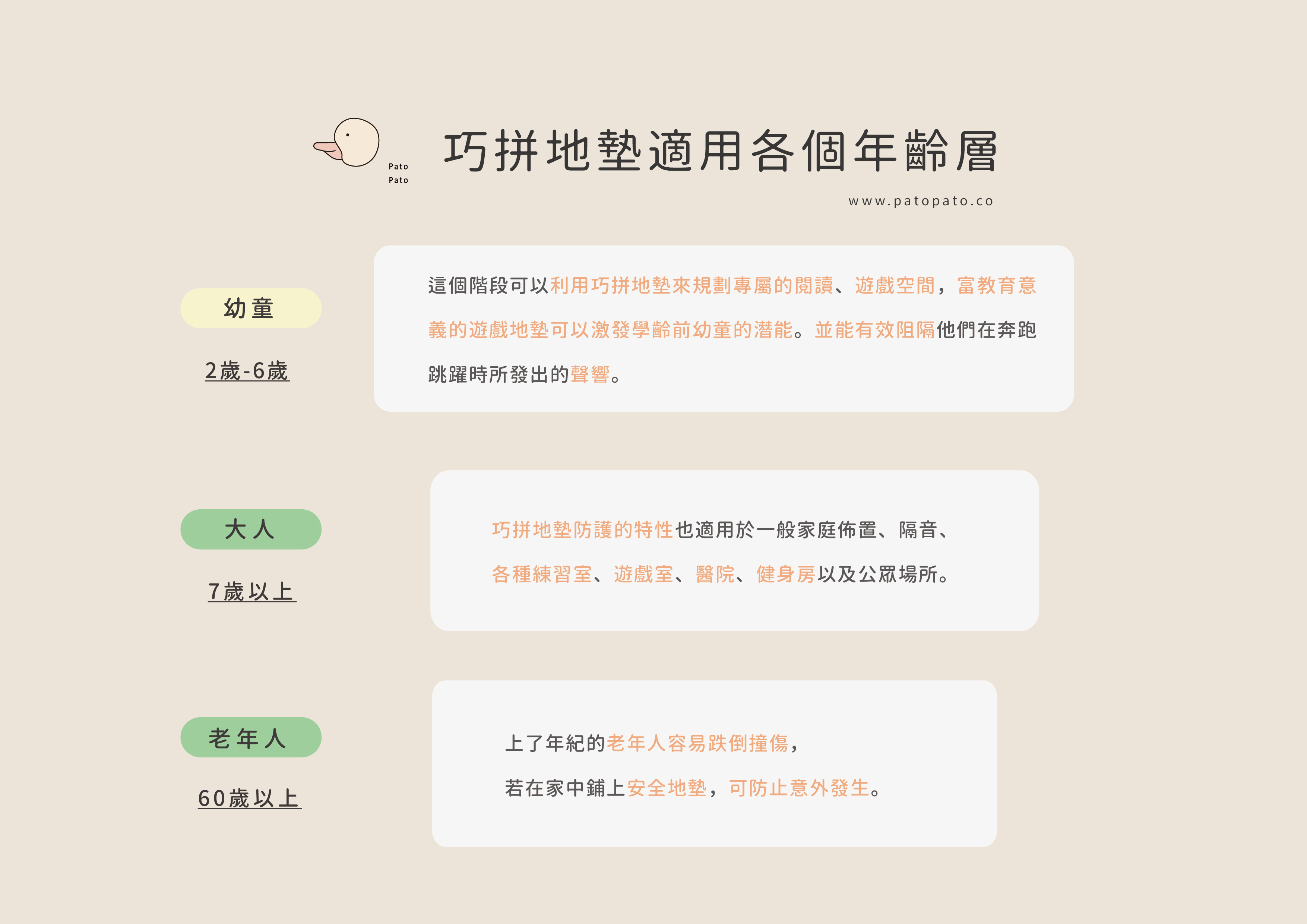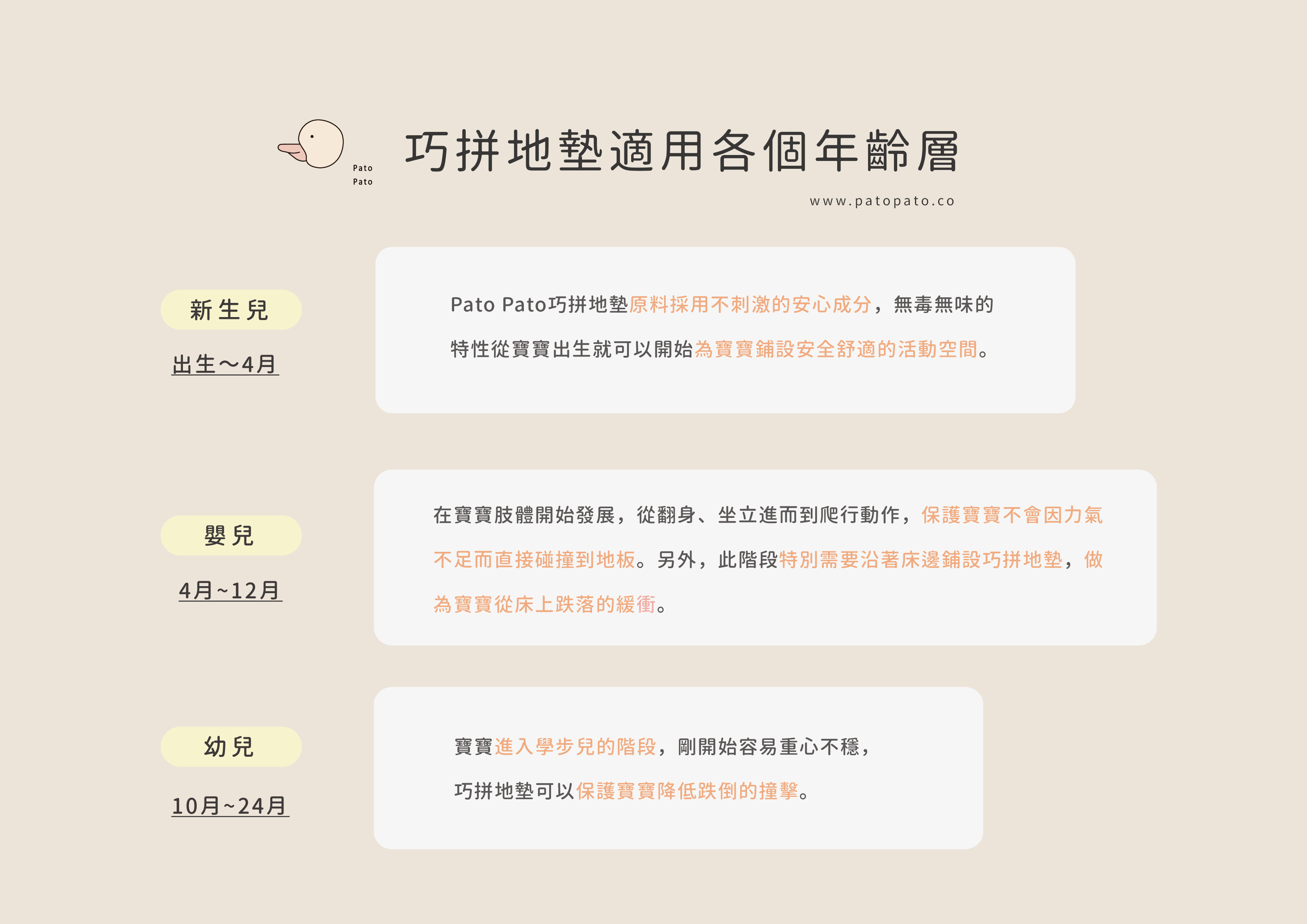 這裡Pato Pato特別為大家整理了地墊適用的年齡層的六階段唷!