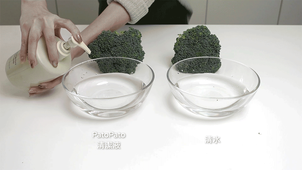 花椰菜的表面擁有一層果蠟,果蠟是油脂的一種,沒辦法溶於水中,單用水很難將花椰菜洗乾淨去除農藥,因此家中擁有Pato Pato奶瓶餐具清潔液的爸媽也可以拿來清洗蔬果、食物能更安心食用。