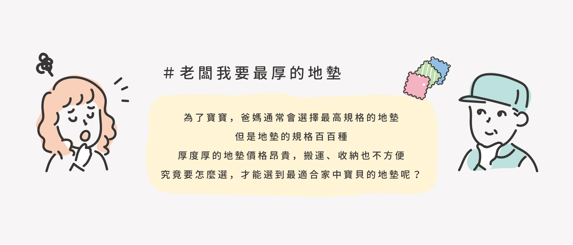 「老闆我要最厚的寶寶地墊!」「四折墊厚度有4公分,看起來好像更安全耶。」「有沒有推薦厚的床邊寶寶地墊?」