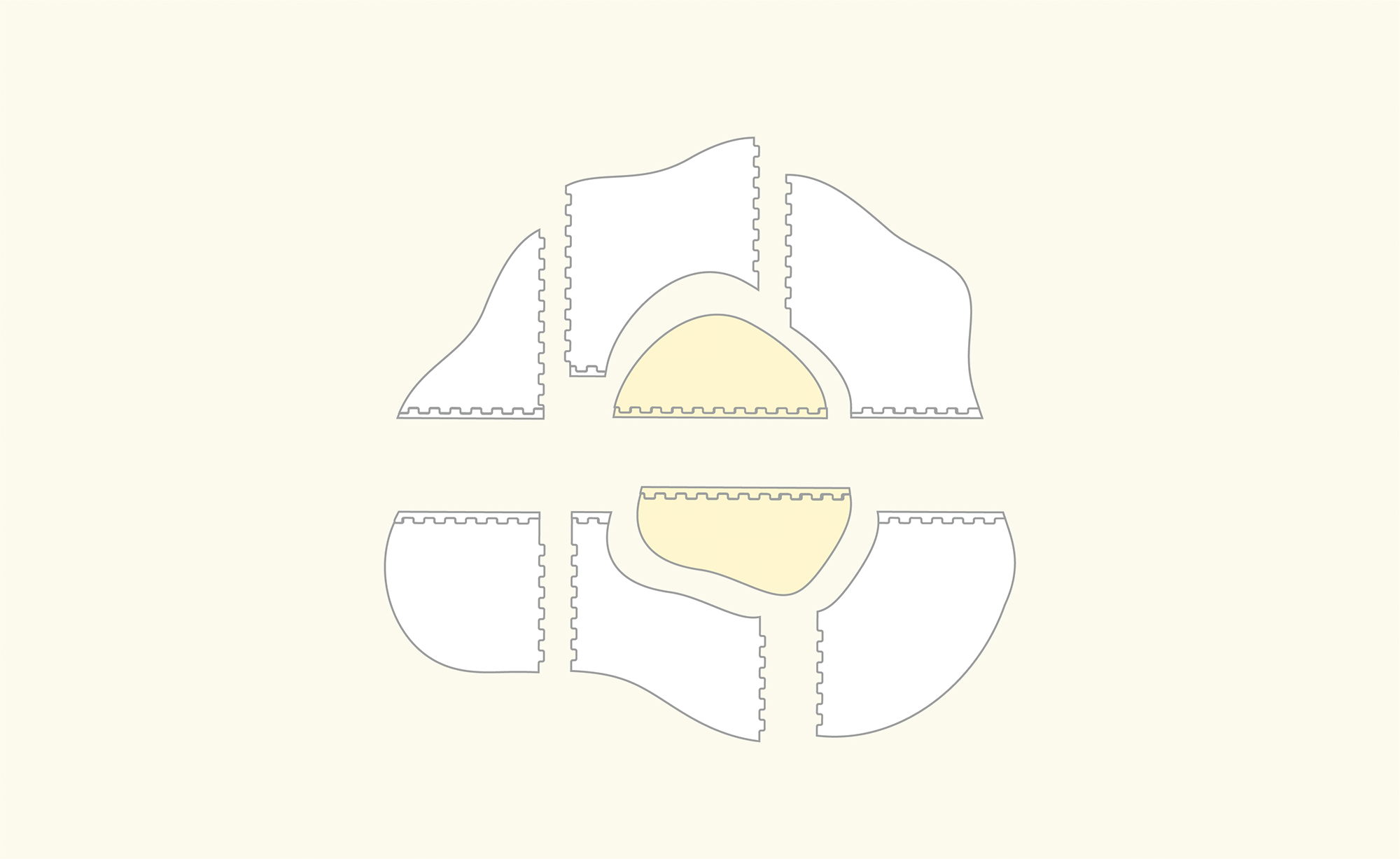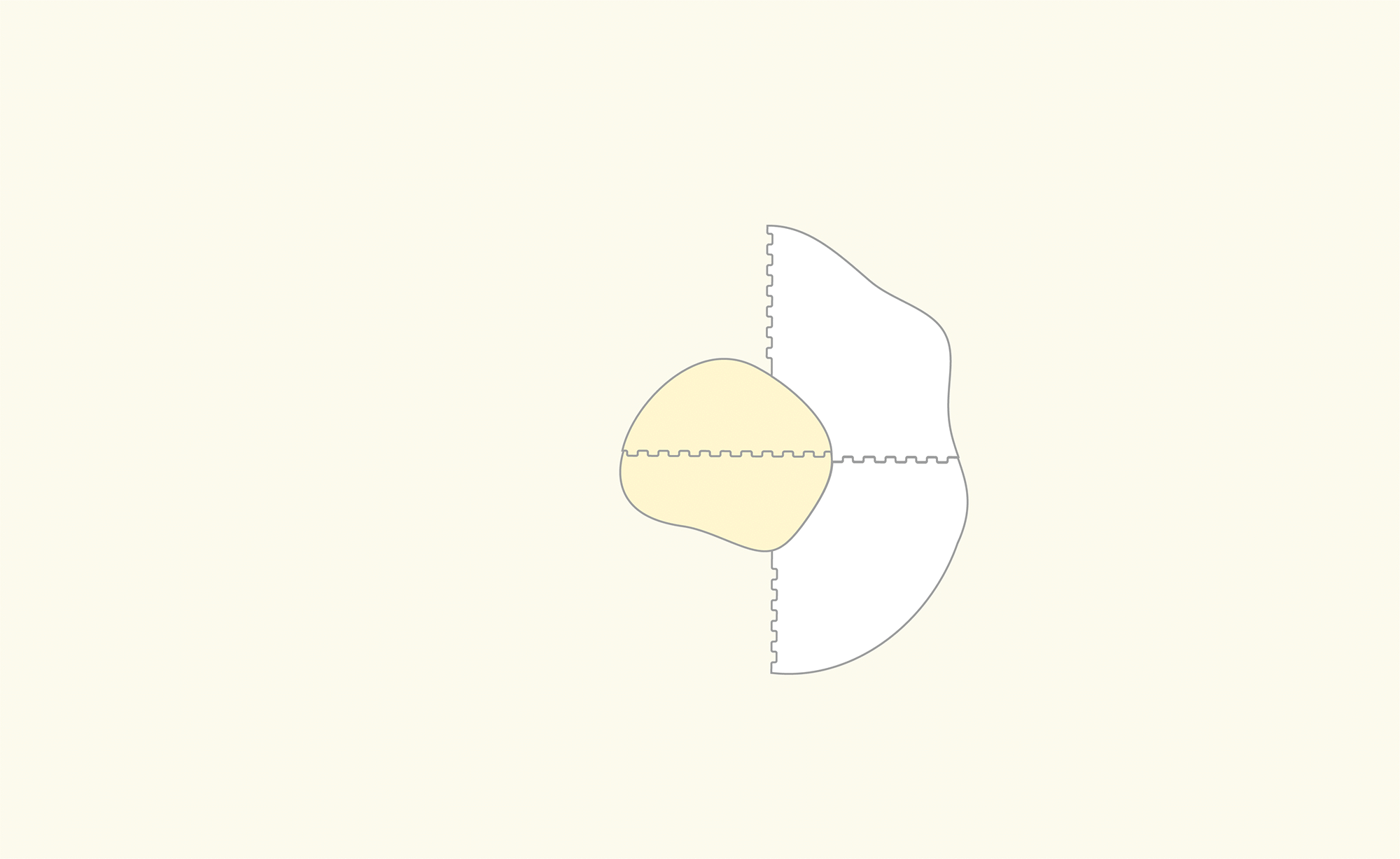 沿著蛋黃邊邊,沿著形狀相對應的蛋白並將蛋白拚起來