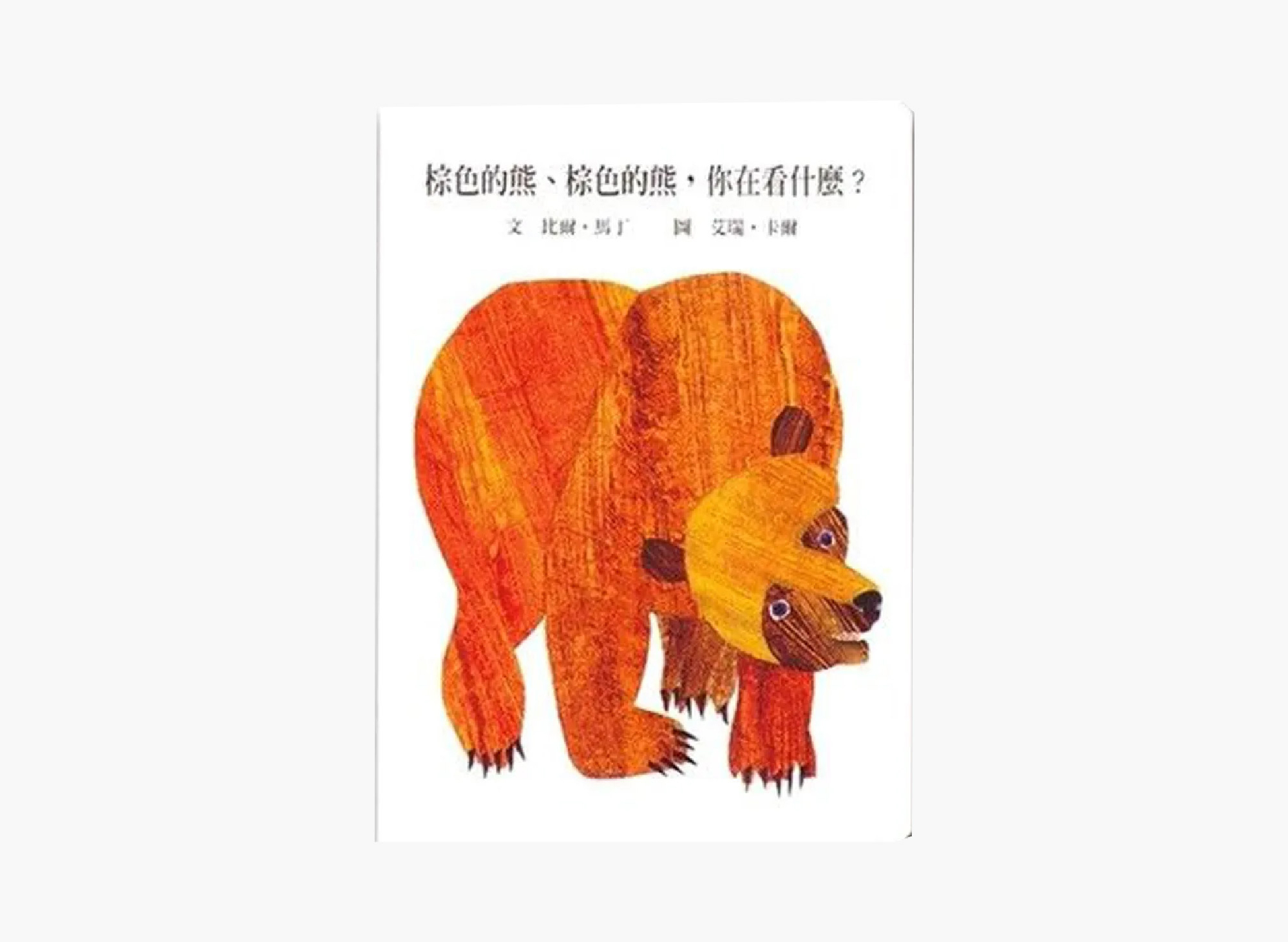 「棕色的熊、棕色的熊,你在看什麼?」「我看見一隻紅色的鳥在看我。」「紅色的鳥、紅色的鳥,你在看什麼?」「我看見一隻黃色的鴨子在看我。」……隨著這樣一問一答的句子、重複的韻律與節奏,一本充滿各種動物與色彩的圖畫書在孩子面前慢慢展開。