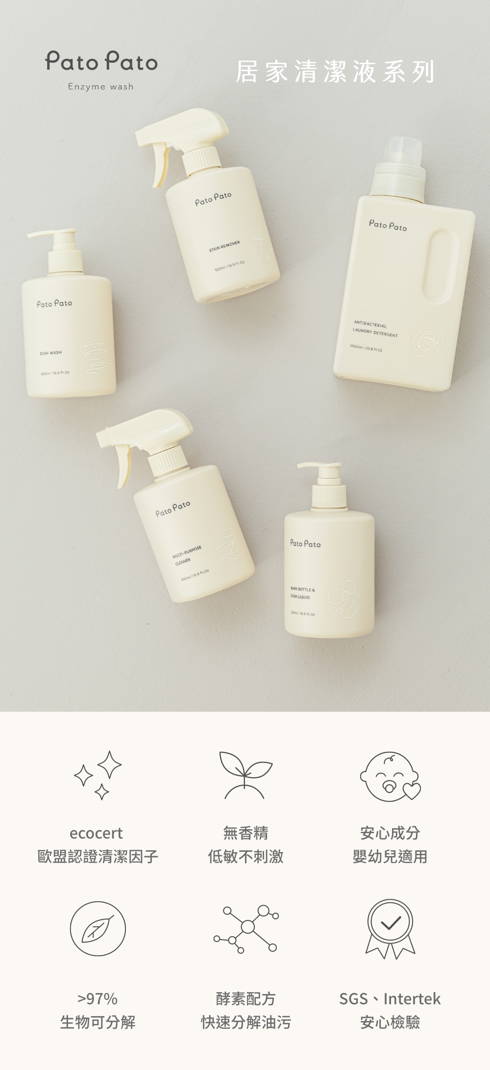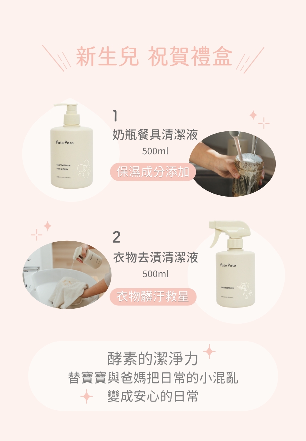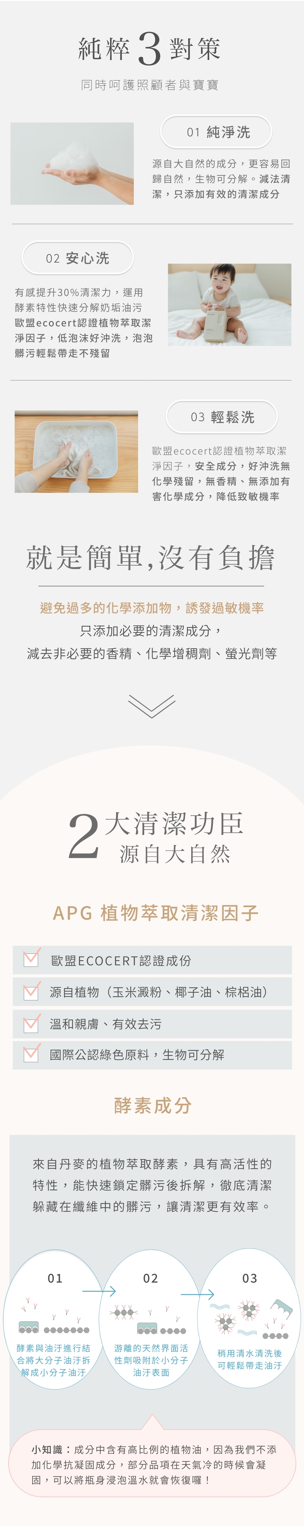 以天然酵素溫和去除油垢,讓奶瓶、餐具立即潔淨。植物萃取、生物可分解,友善地球
