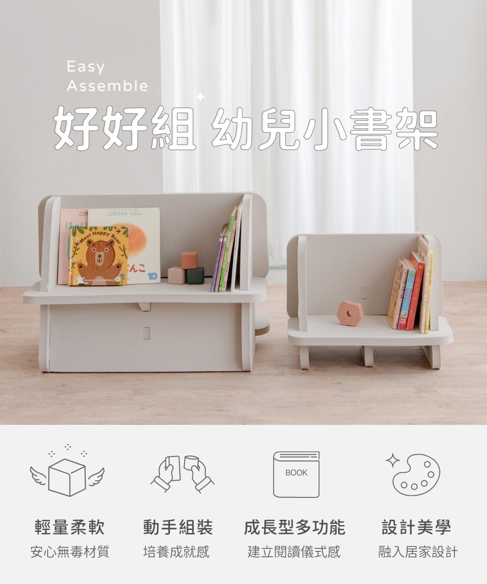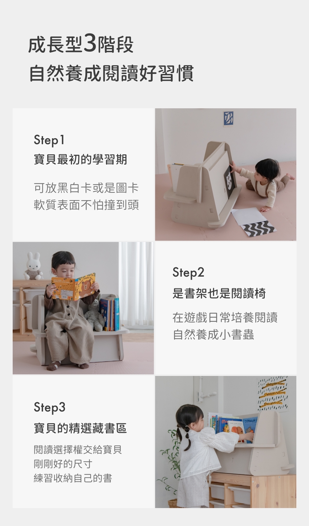|寶貝的第一個成長兒童書櫃,是書櫃也是小椅子|