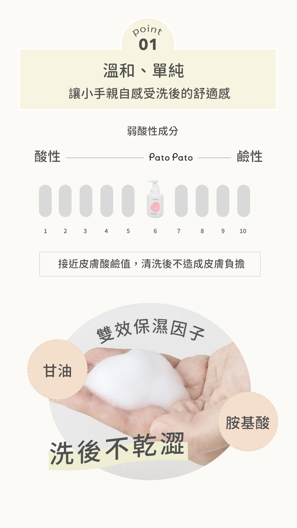 讓孩子愛上洗手的秘密,胺基酸配方洗後滋潤不乾澀。