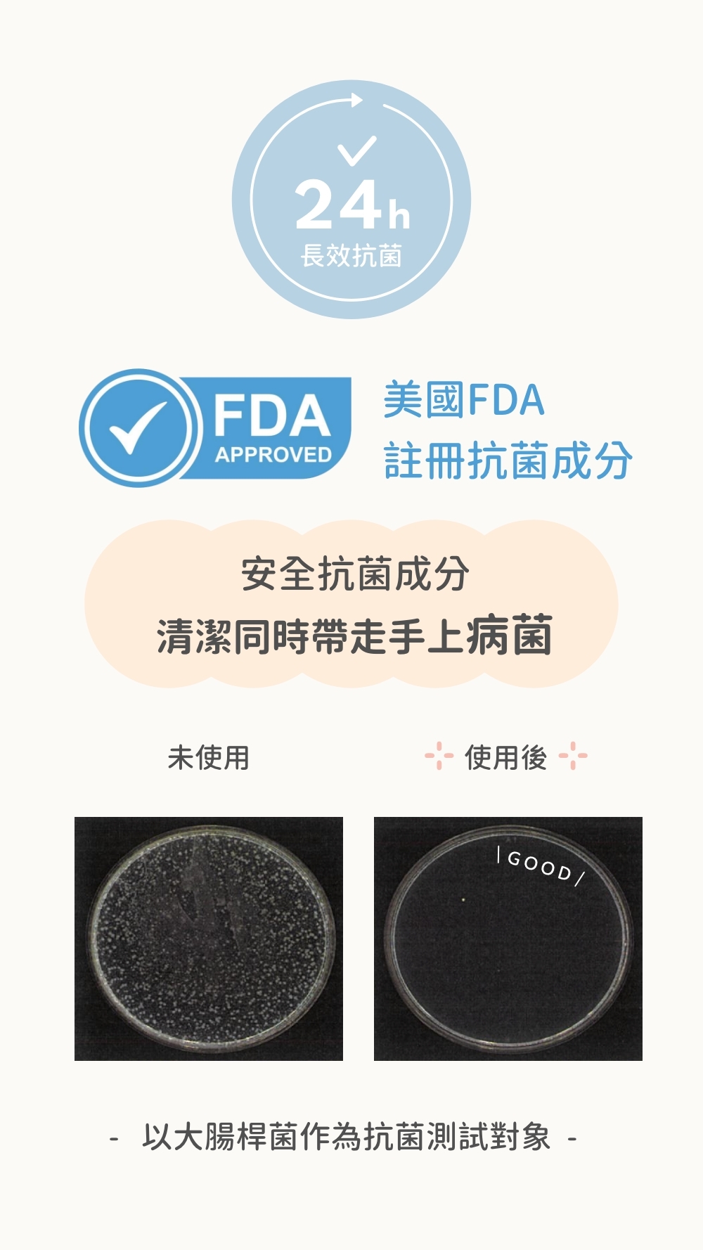 ‘’獨家成份長效抗菌,徹底清潔遠離病菌‘’
