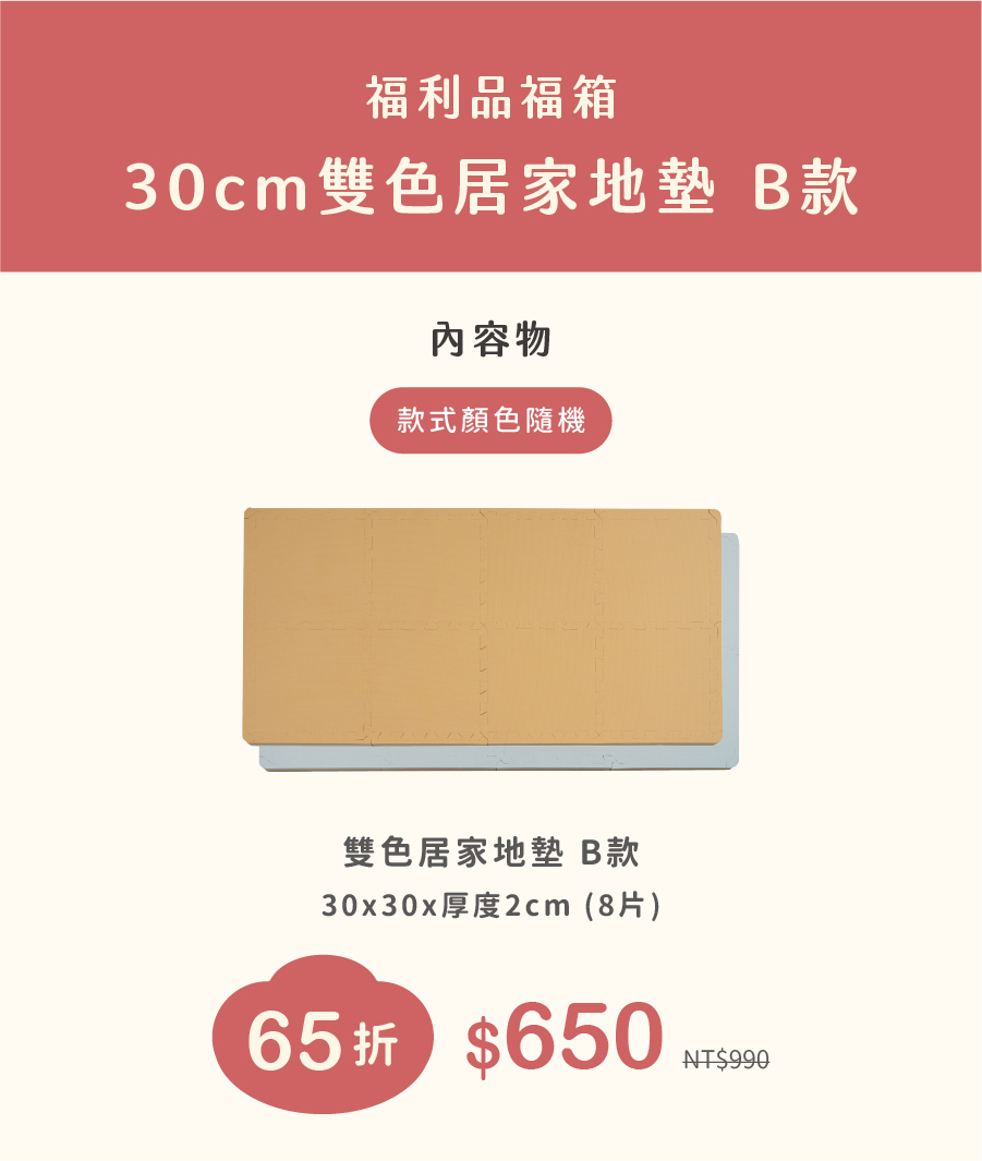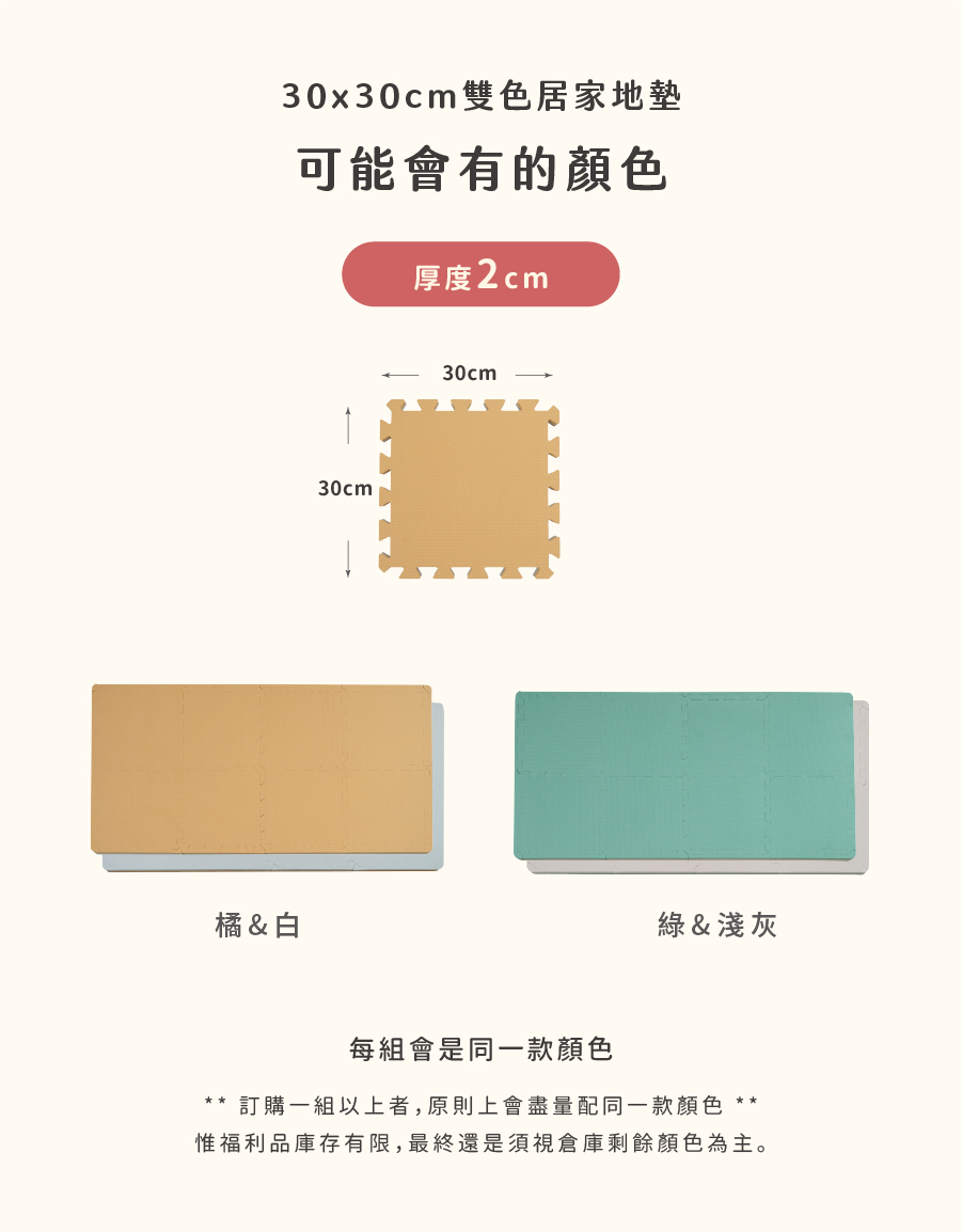 -B款 雙色居家地墊 30cm*8片(顏色隨機)