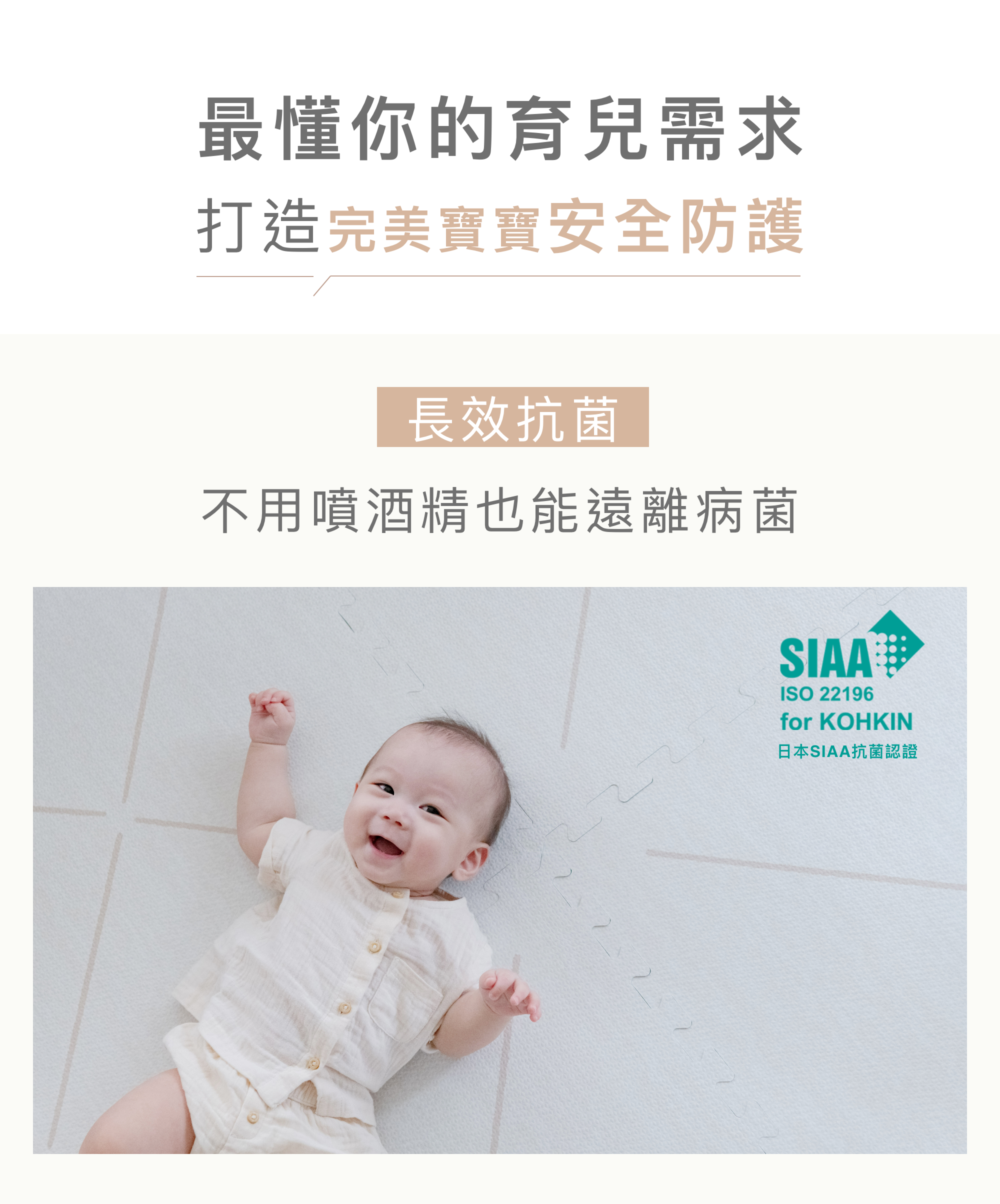 日本SIAA認證抗菌無毒地墊,塵蟎灰塵不堆積,避免寶寶過敏。