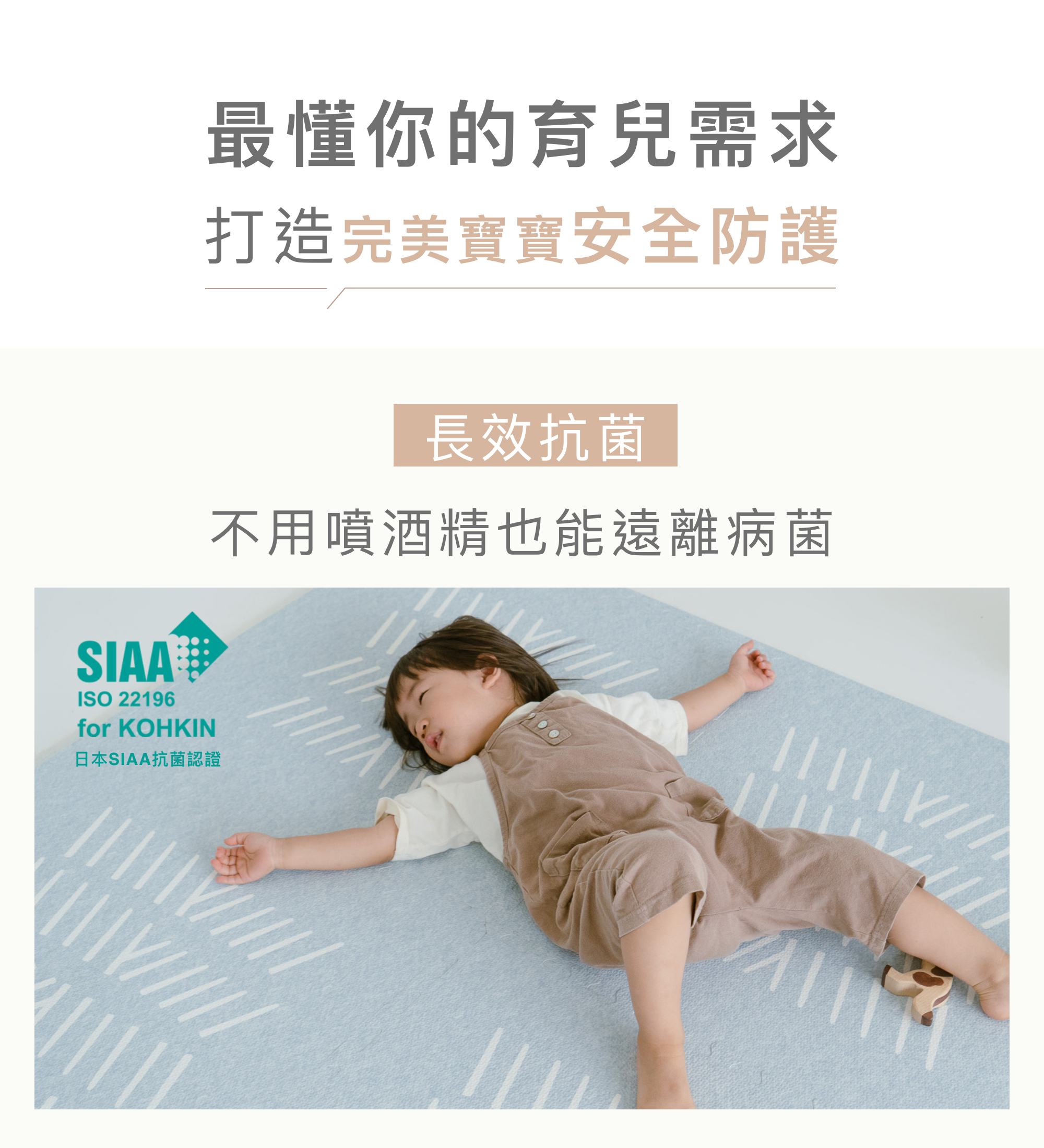 日本SIAA認證抗菌無毒地墊,塵蟎灰塵不堆積,避免寶寶過敏。